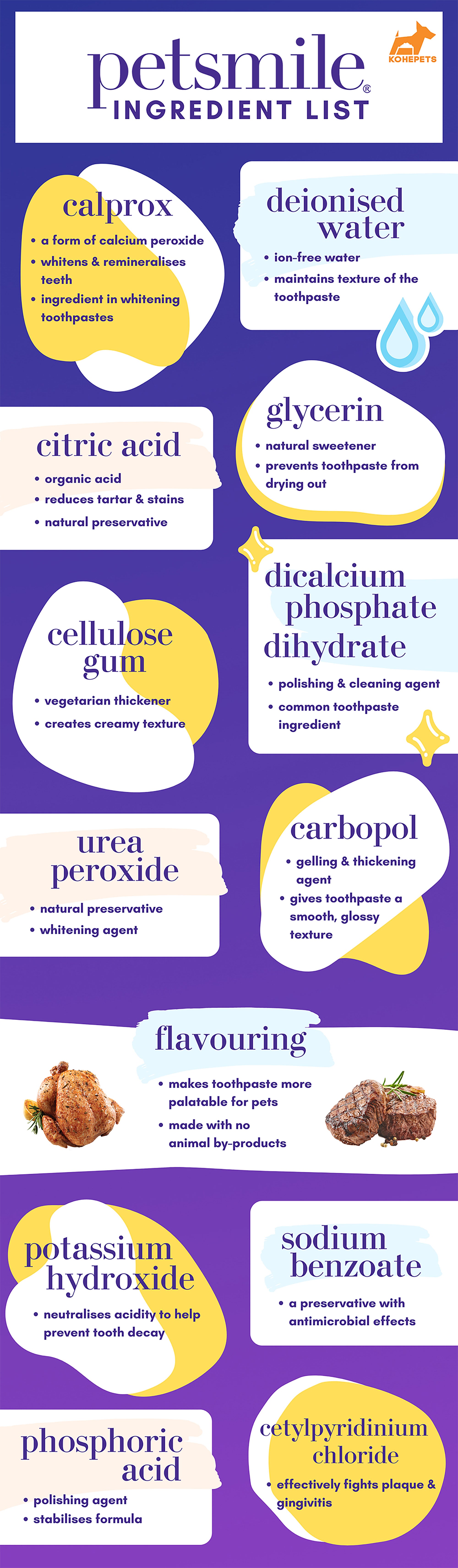 Petsmile Professional Toothpaste for Cats & Dogs’ calcium peroxide has also proven to be able to whiten and remineralise teeth (which includes recalcification and strengthening of the enamel).